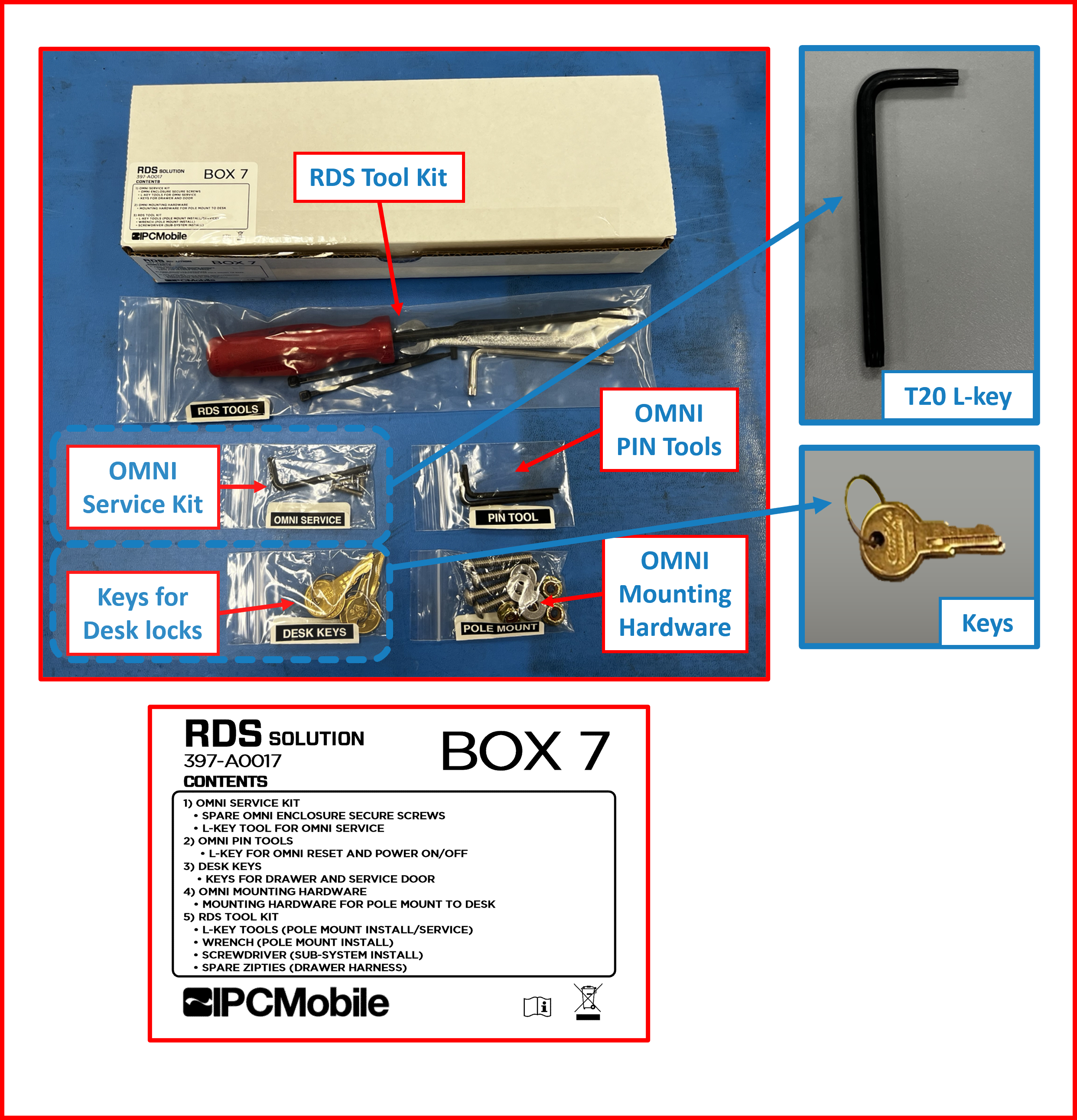To unmount the OMNI and the POLE MOUNT from the Desk, obtain a 5/32โ Hex L-Key and 7/16โ wrench. Tools should be available from prior installation and or kit was provided for removal.